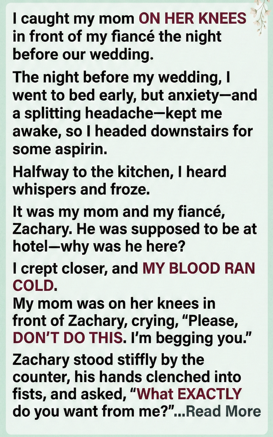 Posted on February 14, 2026 By admin No Comments on I Found My Mom Begging My Fiancé the Night Before My Wedding… and I Cancelled Everything