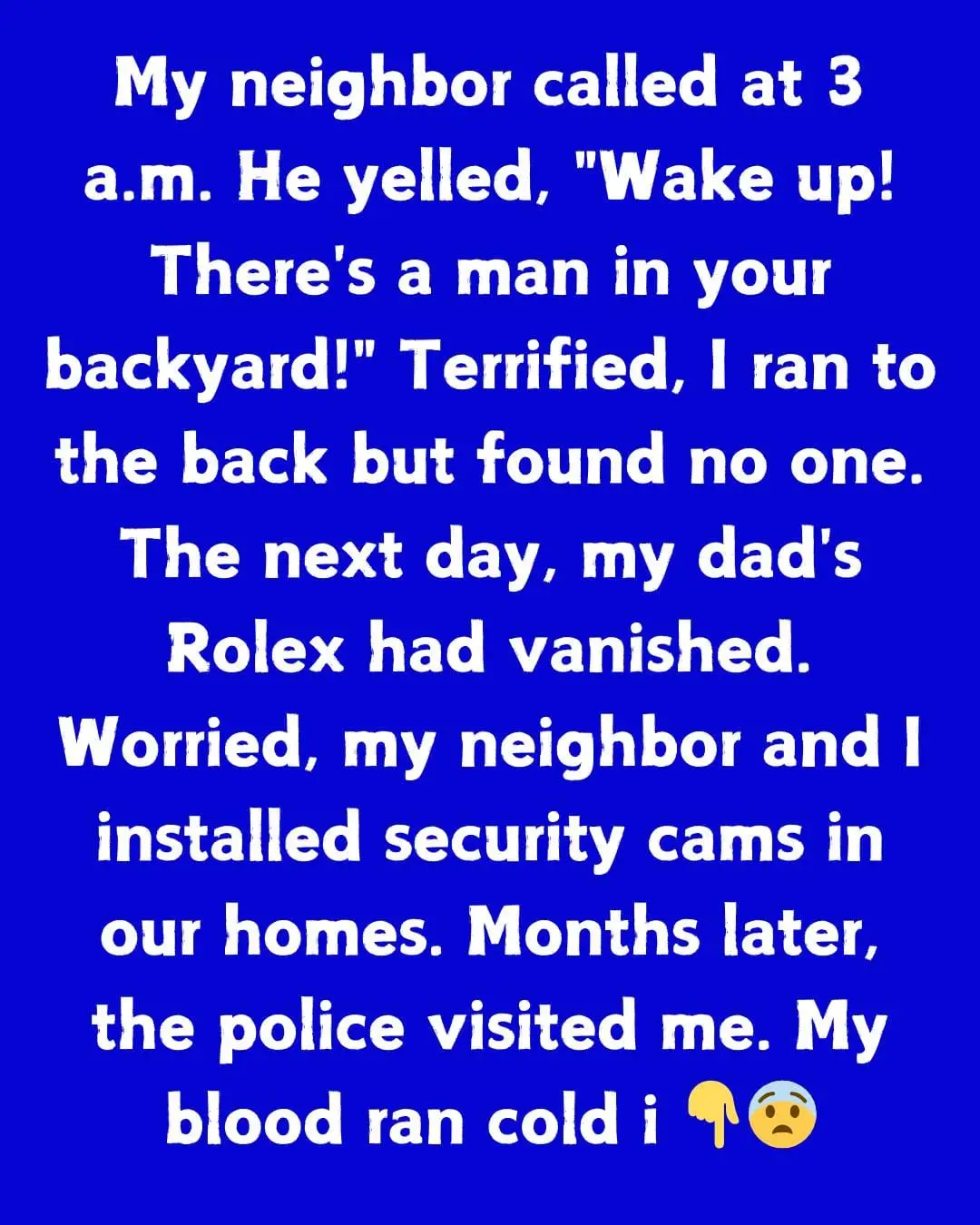My neighbor called at 3 a.m. He yelled, “Wake up! There’s a man in your backyard!” Terrified, I ran to the back but found no one.