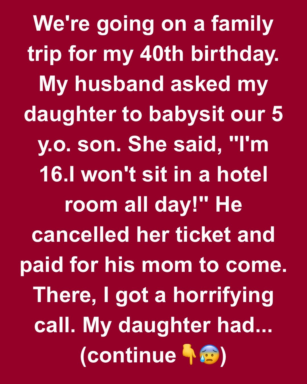 We’re going on a family trip for my 40th birthday. My husband asked my daughter to babysit our 5 y.o. son.